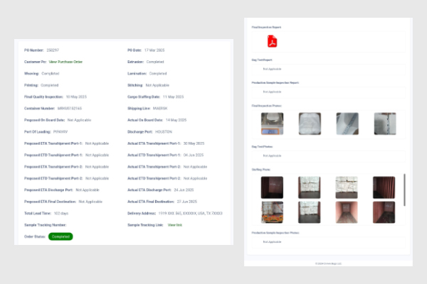 At Crown Bags LLC, transparency is not optional — it is our commitment. We are the only manufacturer and distributor worldwide offering a complete end-to-end online tracking system, giving you full visibility of your order from the moment your PO is released until the day the shipment is delivered to your warehouse.